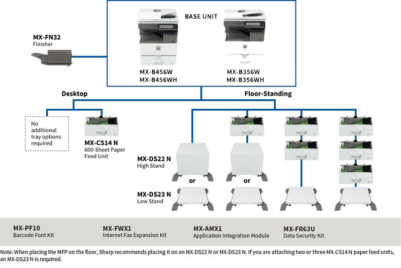MX-B376W / MX-B476W Sistema de trabajo de grupo pequeño 37 / 47 paginas por minuto | |