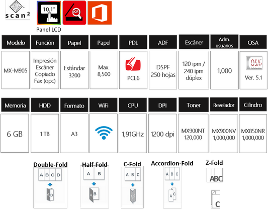 MX-M905 Sistema de alta producción 95 paginas por minuto | |