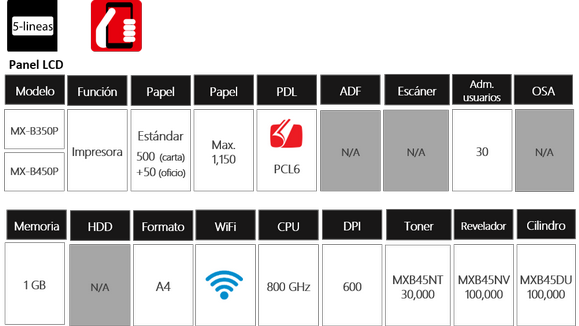 MX-B350P / MX-B450P Impresora de escritorio 35 /45 paginas por minuto | |