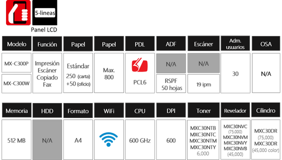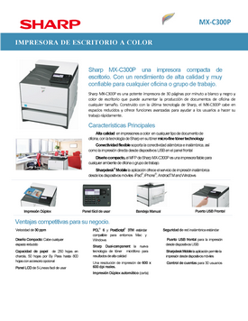 MX-C300P (Impresora) Sistema COLOR compacto de escritorio 30 páginas por minuto | ||||