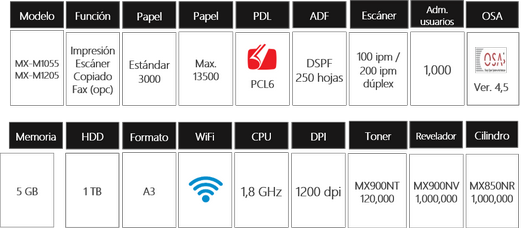 MX-M1055 / MX-M1205 Sistema de alta producción 105/ 120/ paginas por minuto | |