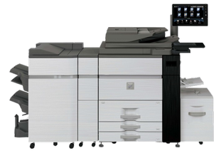 Desde los entornos de oficina hasta los centros de datos corporativos y centros de impresión de alto volumen, la Serie Monocromática de Producción de Sharp ofrecen una tecnología avanzada, alta calidad y características que optimice su flujo de trabajo de documentos como nunca antes. El equipo SHARP MX-M1055 y MX-M1205N han sido diseñadas desde el principio para manejar las rigurosas demandas de entornos de alto volumen. Con la velocidad de motor de 120ppm, configuraciones de red estándar y flexibles y el soporte de carga de gran volumen son un ajuste perfecto donde la productividad y la fiabilidad son esenciales. Una gran pantalla táctil de alta resolución de 15,4“ (diagonal) ofrece una vista previa de escaneo en tiempo real con una sencilla y intuitiva edición para ayudar a asegurar que sus documentos se produzcan con precisión y sin desperdicio. Con una resolución de impresión de 1200 x 1200 ppp y un auténtico Adobe® PostScript®, su empresa puede producir documentos monocromáticos de aspecto profesional con una calidad de imagen nítida que también es económica. Una nueva opción de alimentación de papel utiliza tecnología de alimentación de aire que ofrece mayor fiabilidad y capacidades mejoradas de los medios. | ![]() |