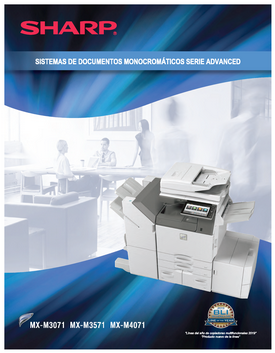 Serie Advanced MX-M3071 /MX-M3571/MX-M4071 se construyen utilizando la última tecnología disponible para brindar el rendimiento, las características y la confiabilidad que se necesitan en los actuales complejos entornos de trabajo. Estos nuevos dispositivos multifunción también son fáciles de usar y ofrecen una mayor productividad, todo para brindar a los clientes una experiencia perfecta e intuitiva, y la confianza en saber que sus trabajos saldrán bien desde la primera vez, siempre. La nueva serie Advanced monocromática también ofrece funciones de seguridad de vanguardia para ayudar a las empresas a proteger sus datos e información personal. | ![]() |